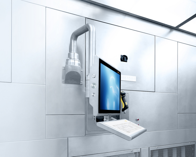 Membrane keyboard with short-travel keys and tactile feedback. Includes an optimized touchpad for cleanroom gloves. Optional RFID/NFC/SmartCard integration. Stainless steel housing with IP67 protection for demanding environments