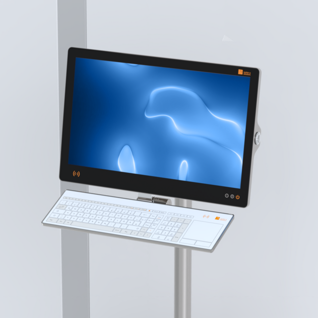 They are designed to withstand regular cleaning using the standard cleaning agents and disinfectants used in cleanrooms. The cables run internally due to installation using a torque hinge. Glass keyboards operate on the capacitive principle with acoustic feedback. The short-stroke keys of the membrane keyboard produce tactile feedback during operation.